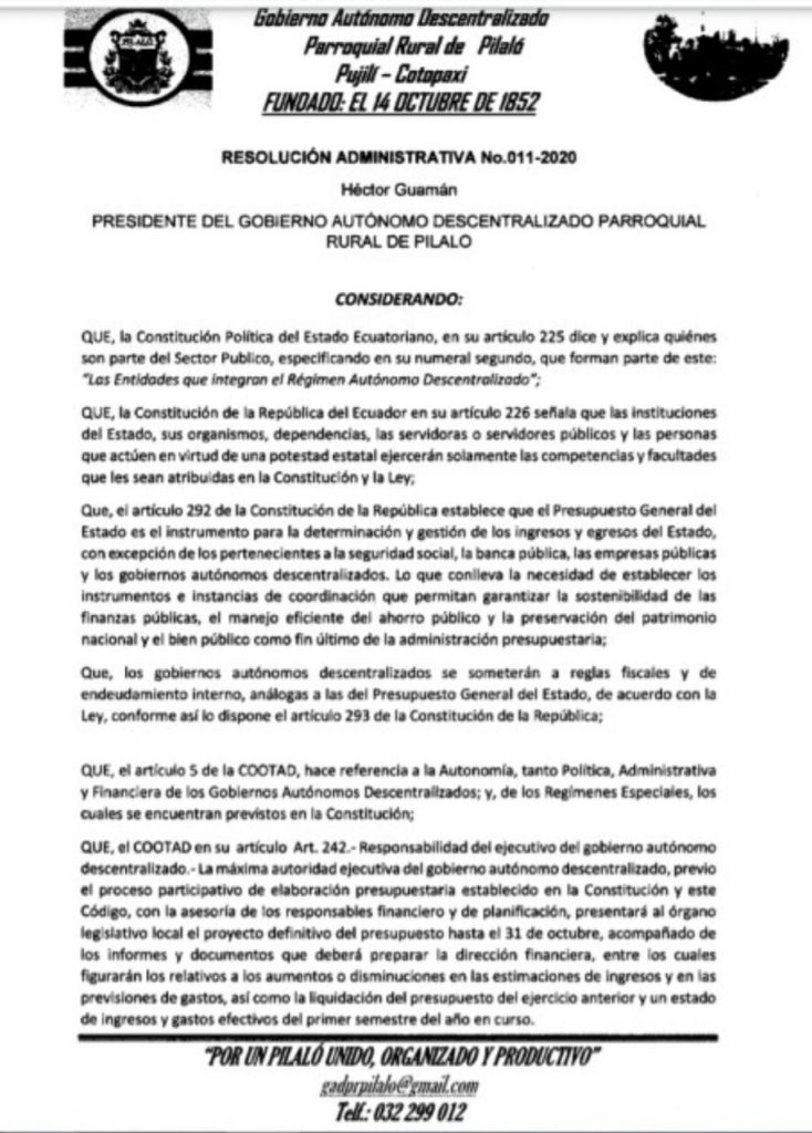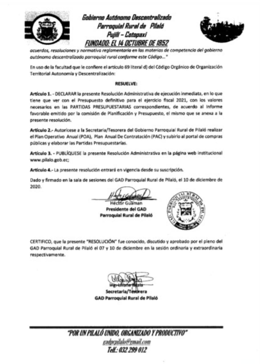 RESOLUCION ADMINISTRATIVA N°011